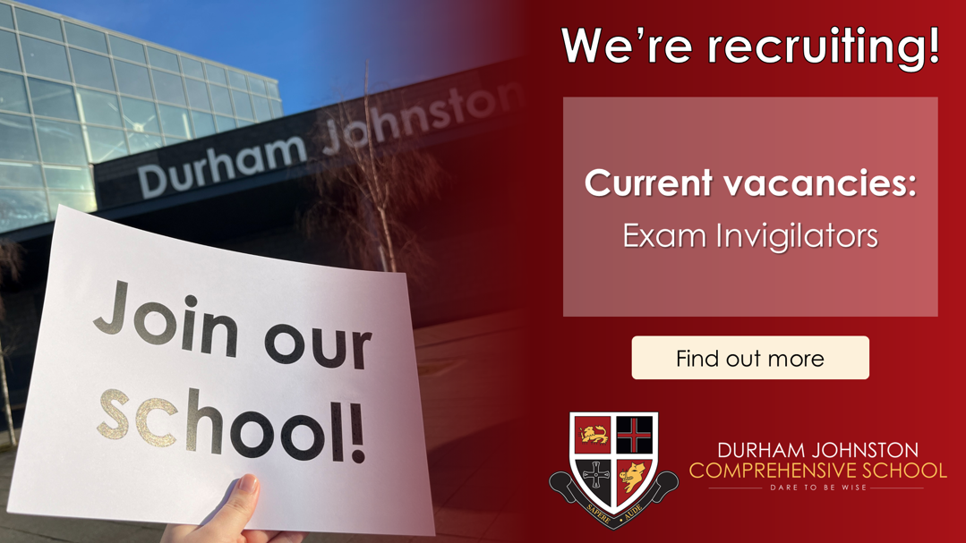 “Durham Johnston Comprehensive School is committed to safeguarding and promoting the welfare of children and young people and expects all its staff and volunteers to share this commitment. All post holders are subject to a satisfactory enhanced Disclosure and Barring Service (DBS) check